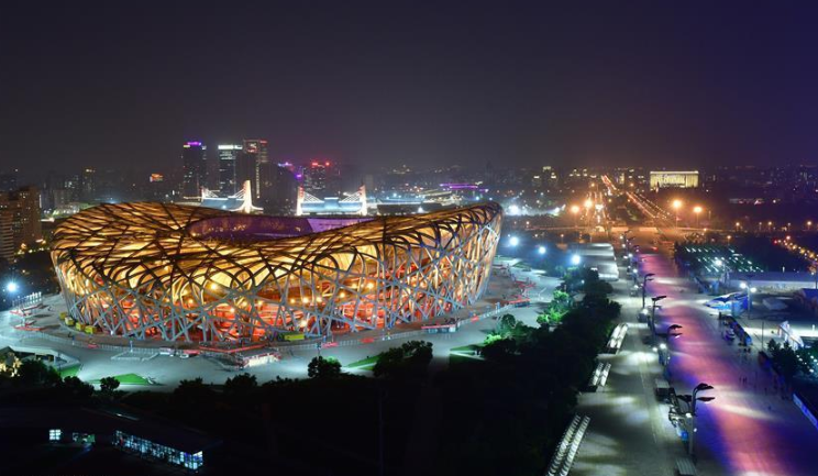 5月14日,國(guó)家會(huì)議中心和奧林匹克塔交相輝映。 當(dāng)晚,一場(chǎng)“空間光影秀”在北京上演。