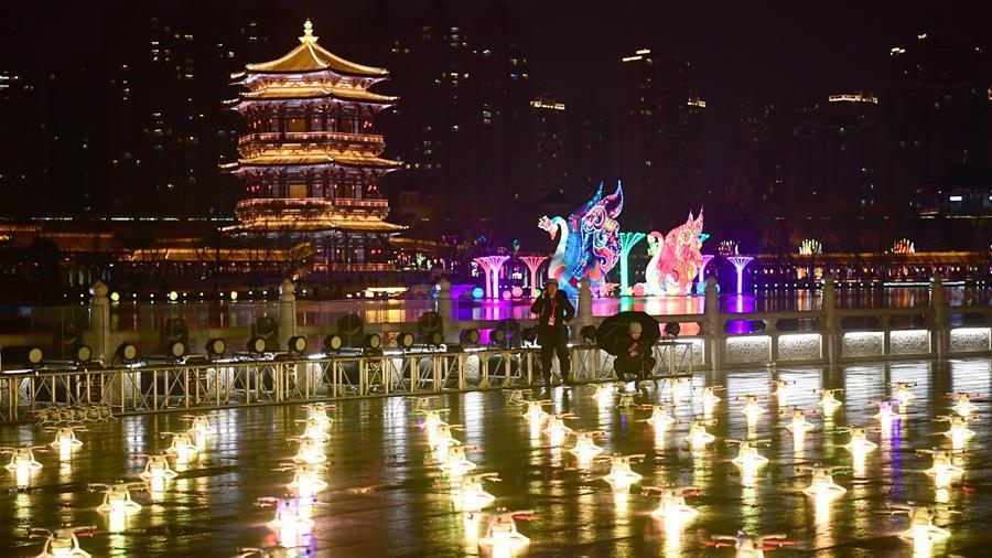 人機燈光秀亮相西安