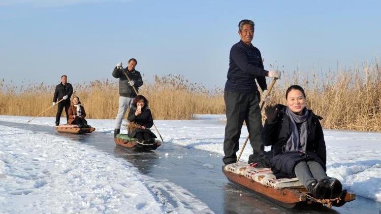 1月30日,河北雄安新區(qū)白洋淀湖面結(jié)了厚厚的冰,民眾在此冰釣、滑冰,這里儼然成了一個天然的“游樂場”。