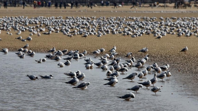 近日,大批候鳥飛抵河北省秦皇島市沿海濕地,出現(xiàn)“萬鳥臨?!逼嬗^。