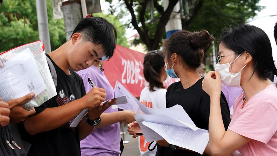 6月27日,在上海市閔行區(qū)莘松中學考點,考生在考場內(nèi)等待開考。