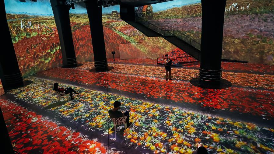 這是6月10日在比利時(shí)布魯塞爾拍攝的“沉浸式莫奈藝術(shù)展”現(xiàn)場。