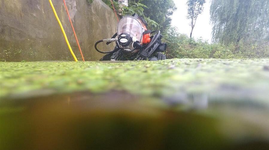 7月28日在橫道河子?xùn)|北虎林園拍攝的在水中納涼的東北虎。時值盛夏,位于黑龍江省海林市的橫道河子?xùn)|北虎林園的東北虎活動量減少,以不同方式消夏納涼。