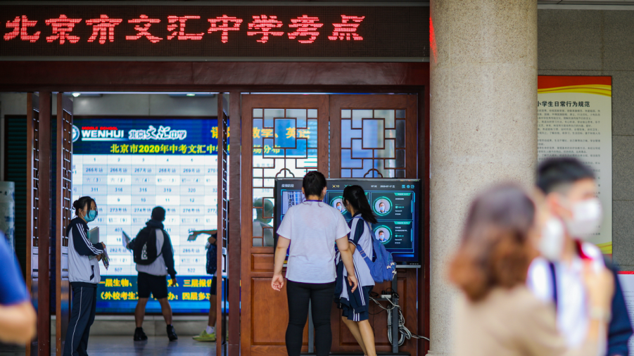 2020年7月17日,2020北京中考開始,在文匯中學考點學生們有序進入考點。
