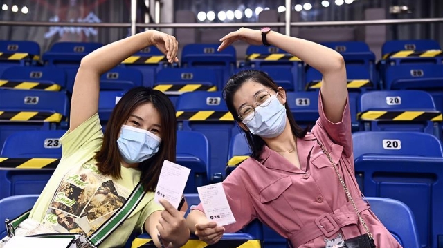 7月26日,在山東青島舉行的2019-2020賽季中國(guó)男子籃球職業(yè)聯(lián)賽(CBA)復(fù)賽第二階段(嶗山賽區(qū))比賽中,醫(yī)護(hù)人員、教師、公安戰(zhàn)線(xiàn)人士通過(guò)官方購(gòu)票平臺(tái),完成包括核酸檢測(cè)在內(nèi)的相關(guān)流程后進(jìn)場(chǎng)觀(guān)看了上海久事隊(duì)迎戰(zhàn)山東西王隊(duì)的比賽。 觀(guān)賽期間,觀(guān)賽者須全程佩戴口罩,對(duì)號(hào)入座,嚴(yán)格保持間隔一米就座。退場(chǎng)時(shí),觀(guān)眾須按照自后向前、先兩邊后中間的順序,保持“一米線(xiàn)”社交距離有序退場(chǎng)。