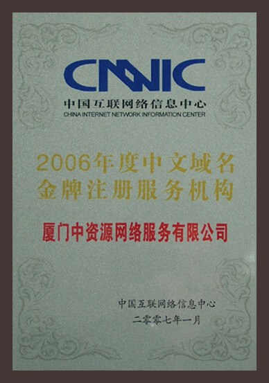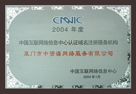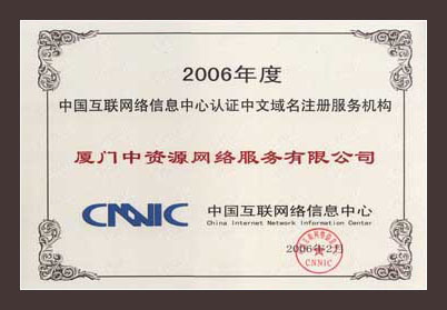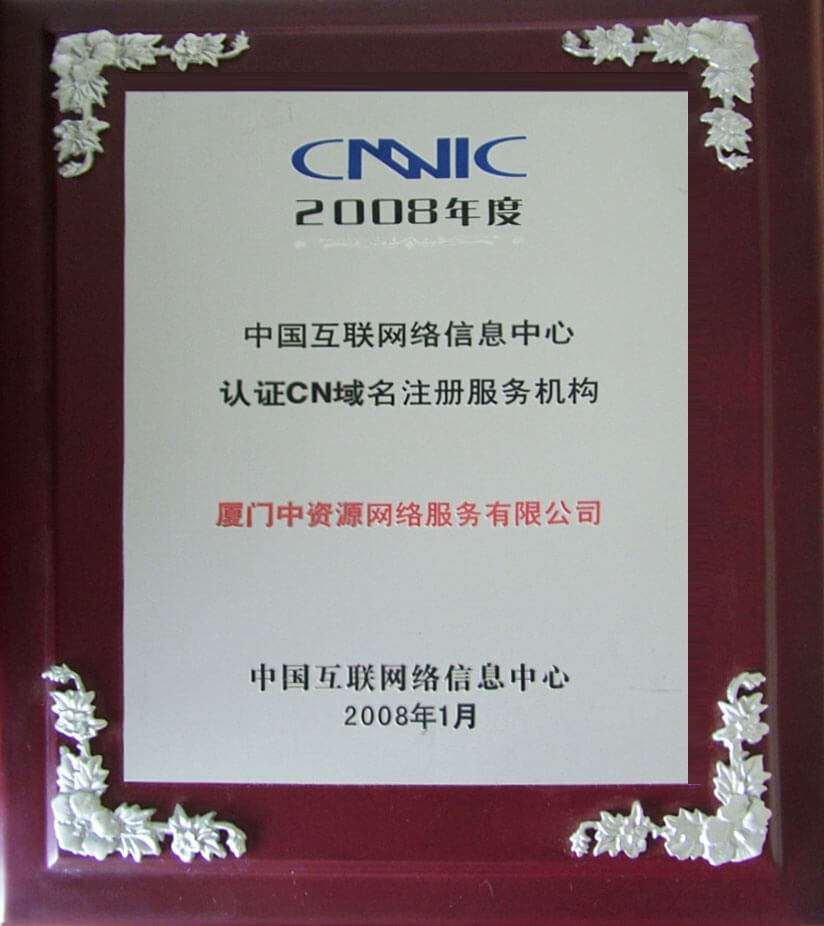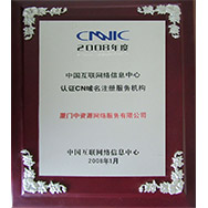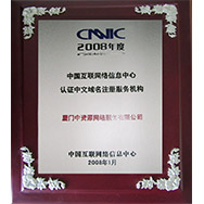 CCNNIC 2008年度中國互聯網絡信息中心認證中文域名注冊服務機構