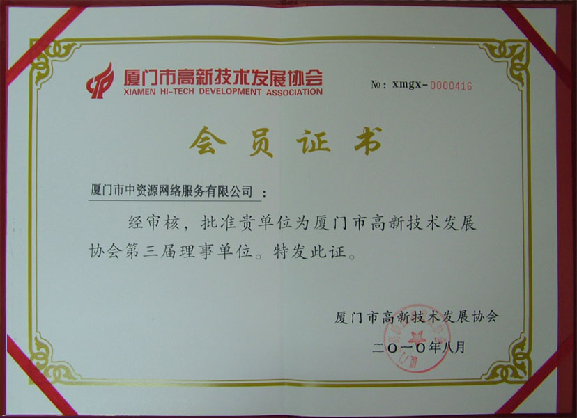 榮獲廈門市高新技術發(fā)展協會第三屆理事單位