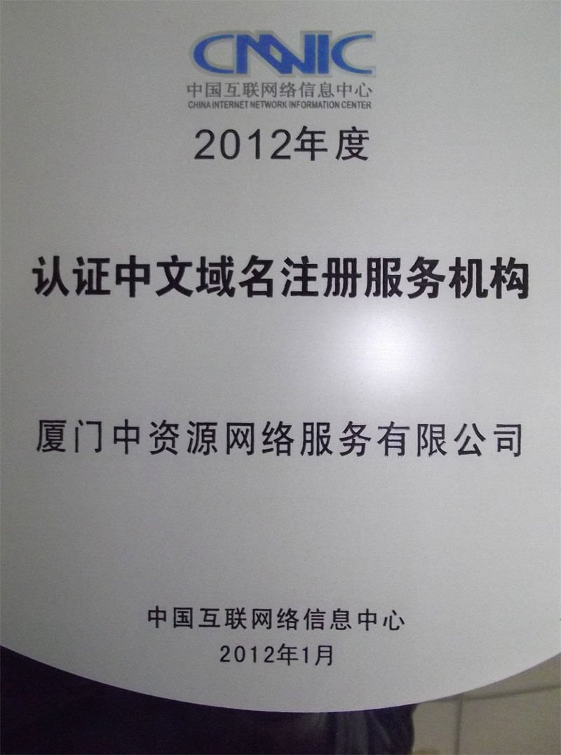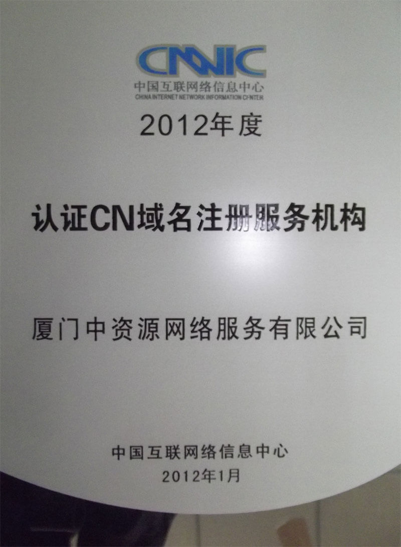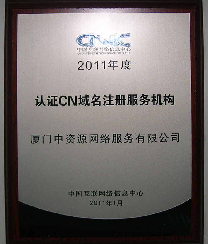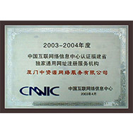 CNNIC 2009年度中國互聯網絡信息中心認證CN域名注冊服務機構