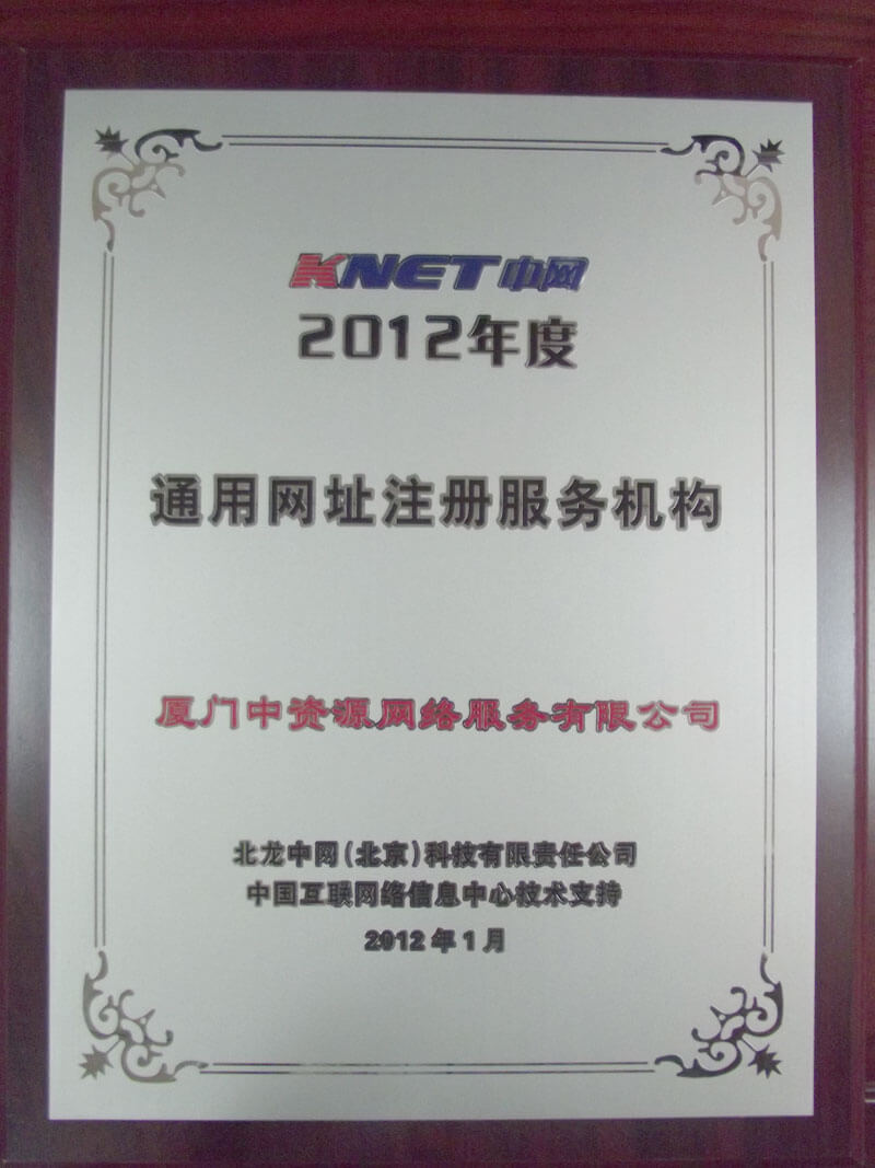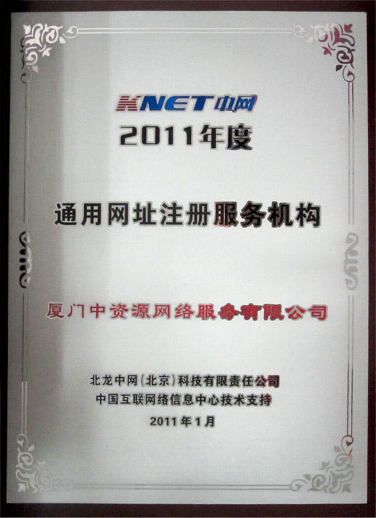 CNNIC 2009年度中國互聯網絡信息中心認證通用網址注冊服務機構