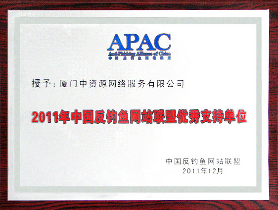 2011年中國反釣魚網站聯盟優(yōu)秀支持單位