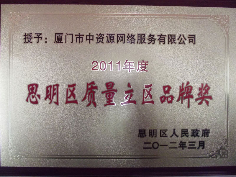 2011年度思明區(qū)質量立區(qū)品牌獎
