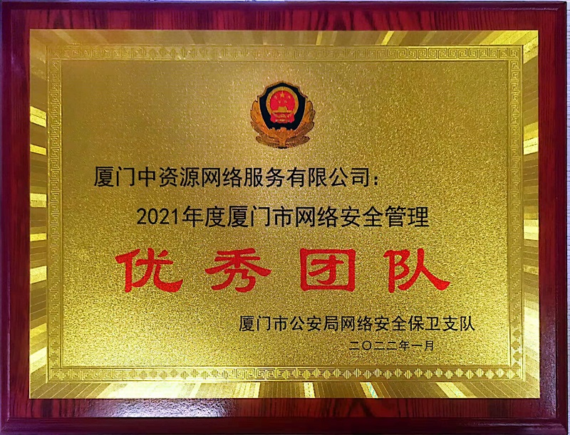 2021年度廈門市網絡安全管理優(yōu)秀團隊