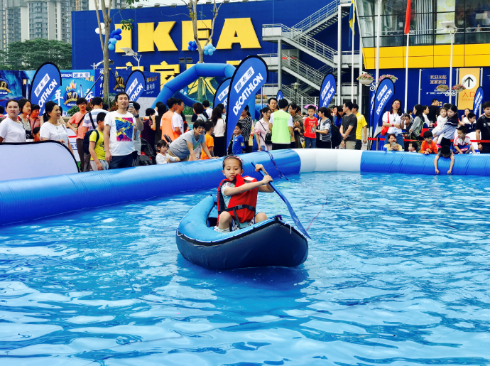記者在現(xiàn)場看到,迪卡儂在外廣場準(zhǔn)備了攀巖、籃球、高爾夫、皮劃艇、平衡車等諸多運動項目供市民體驗。不少市民更是帶著孩子們在各項目競賽,玩得不亦樂乎。據(jù)了解,該活動僅在五一期間開放。