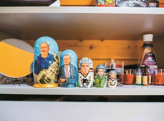 說起來,老烏沙科夫和中國也有點緣分,因為他的兒媳婦是一位來自中國杭州的女孩。烏沙科夫的家處于莫斯科郊外的富人區(qū),其實當(dāng)你踏入他家大門,就能立刻感覺踏入了一個冰球運(yùn)動員的世界。墻角里擺放著的全是冰球桿,家里的各種裝飾也都是由冰球桿以及各種海報組成的。最有趣的是,套娃和伏特加酒瓶上,都特別定制著老人的照片。“這個很棒!”記者指著套娃說道,而老烏沙科夫聳聳肩,表示很淡定。