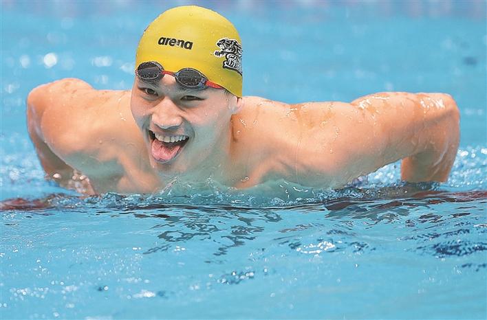 昨日,在第18屆亞運(yùn)會男子200米個人混合泳決賽中,中國選手汪順后來居上,奪得冠軍。