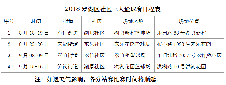“2018羅湖區(qū)社區(qū)三人籃球賽”分成四個(gè)分站賽。目前,羅湖區(qū)東門(mén)街道湖貝社區(qū)的“東門(mén)站”首場(chǎng)分站賽已決出勝負(fù),接下來(lái)的三個(gè)分站賽地點(diǎn)分別是羅湖區(qū)東湖街道東樂(lè)社區(qū)、羅湖區(qū)翠竹街道翠竹社區(qū)和羅湖區(qū)筍崗街道湖景社區(qū)。