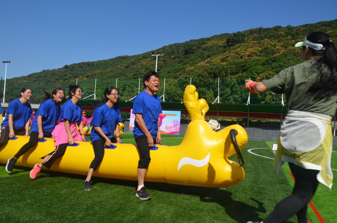 “龍行天下”游戲考驗(yàn)隊(duì)員的協(xié)調(diào)能力和合作精神,既需要技巧也非常消耗體力,隊(duì)員們激情滿滿,現(xiàn)場(chǎng)氛圍十分火爆,最終,開心隊(duì)(藍(lán)隊(duì))以8分的好成績(jī)又拿到了第一名。
