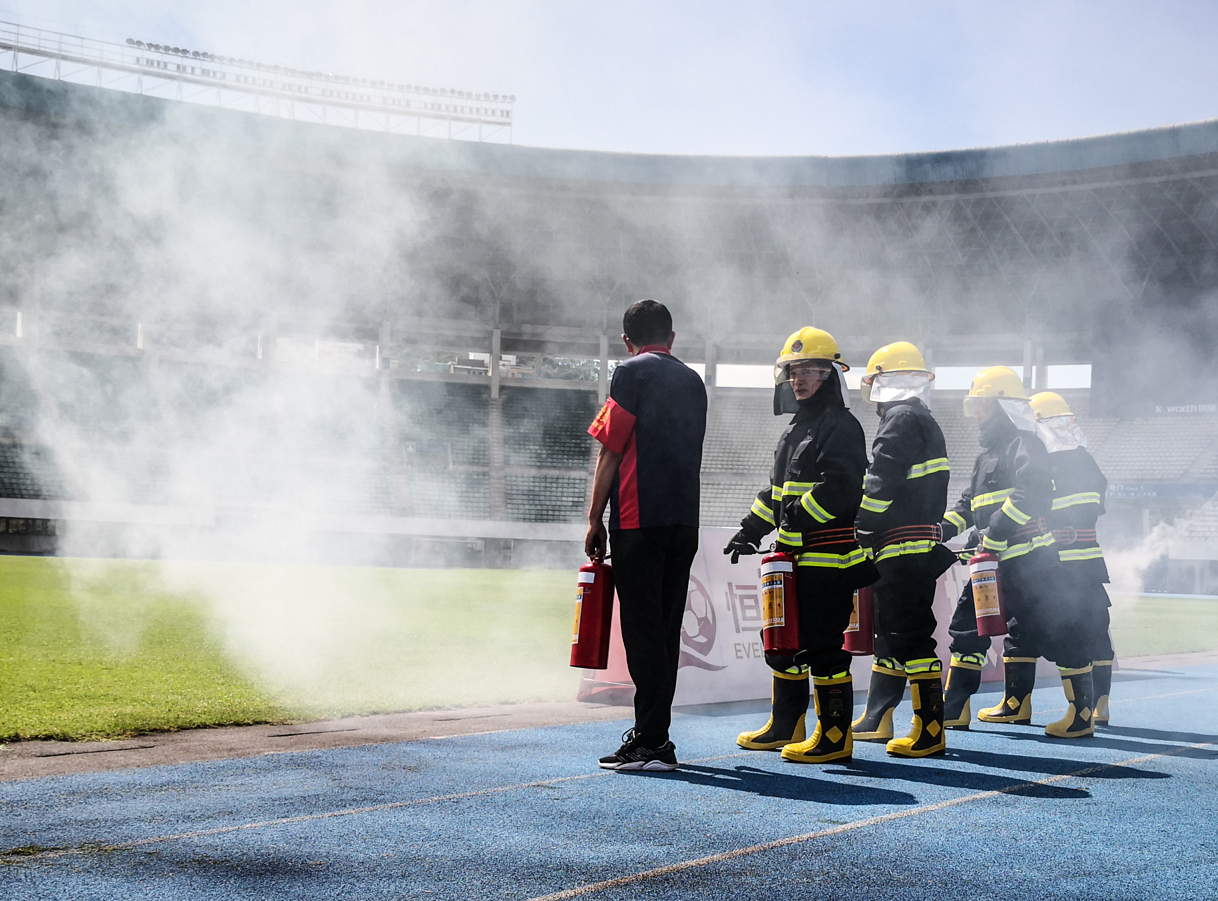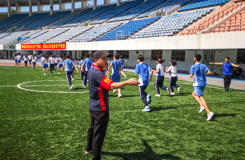 為確保本次演練到位,體育中心特別邀請了羅湖中學(xué)初中部的同學(xué)參加演練,讓孩子們有一次親身感受火災(zāi)疏散的經(jīng)歷,了解火災(zāi)疏散的流程,提升同學(xué)們的自救意識和技能。15:00,體育中心體育場,隨著一聲警報聲的響起各工作組在體育場播音系統(tǒng)指揮下第一時間到達(dá)指定位置,搶險求援組迅速開展消防滅火,警戒疏散組指揮在場地和看臺的學(xué)生快速、有序從就近路線撤離至廣場安全區(qū)域,并尋找是否有遺漏的學(xué)生。師生到達(dá)廣場安全區(qū)域,各班班主任清點(diǎn)學(xué)生人數(shù),確保學(xué)生無一人滯留,并層層上報。不到9分鐘時間,600多名羅湖中學(xué)初中部師生全部安全撤離。整個演習(xí)過程流程清晰,信息傳達(dá)準(zhǔn)確、及時,疏散指揮反應(yīng)快速,未發(fā)生學(xué)生擁擠、無序的安全隱患,演習(xí)效果理想。