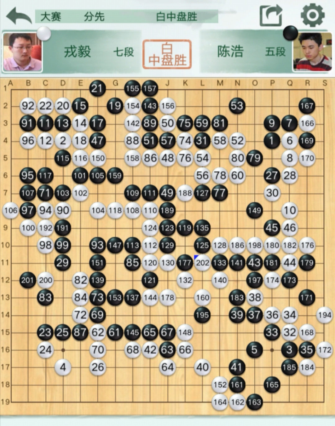 戎毅率先贏(yíng)了陳浩五段(對(duì)陣棋譜)