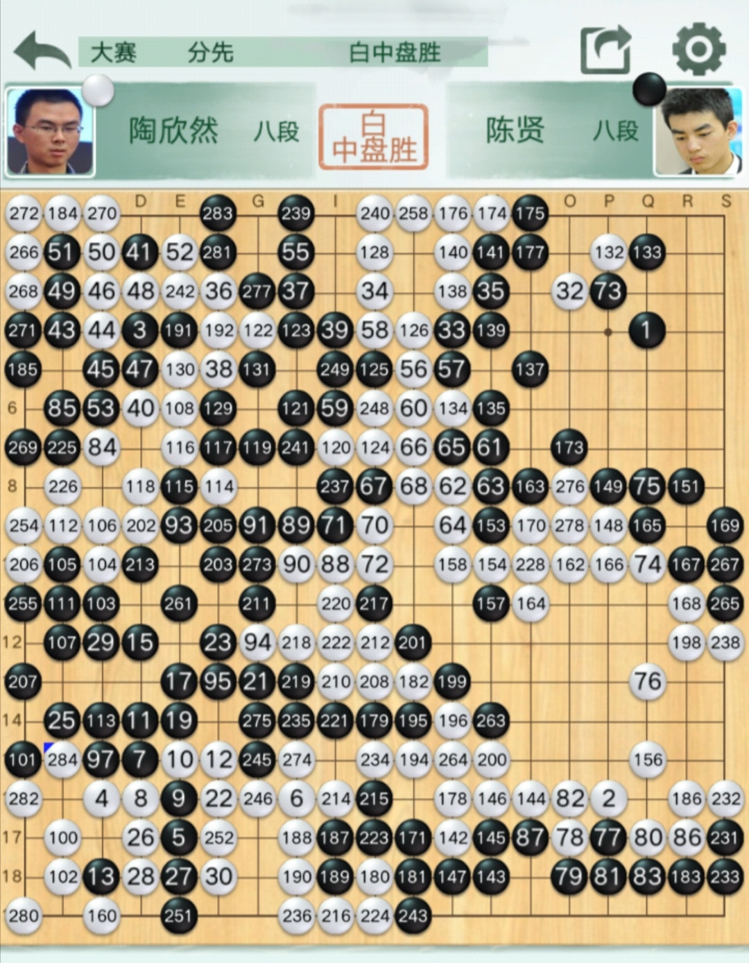 四臺(tái):陶欣然八段執(zhí)白(勝)陳賢八段