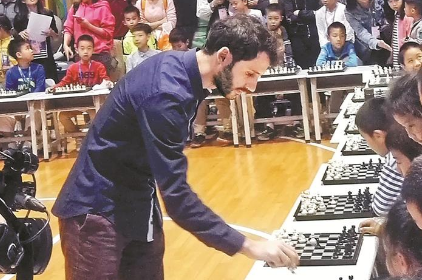 國際象棋“大咖”走訪鹽田 與30名小棋手下“車輪戰(zhàn)”