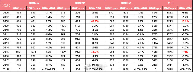 隨著3月底三大運(yùn)營商公布的2019年資本開支展望,顯示資本開支見底回升,2019年三大運(yùn)營商披露年度資本開支計劃合計3031億,同比增長6%,結(jié)束3年下滑。