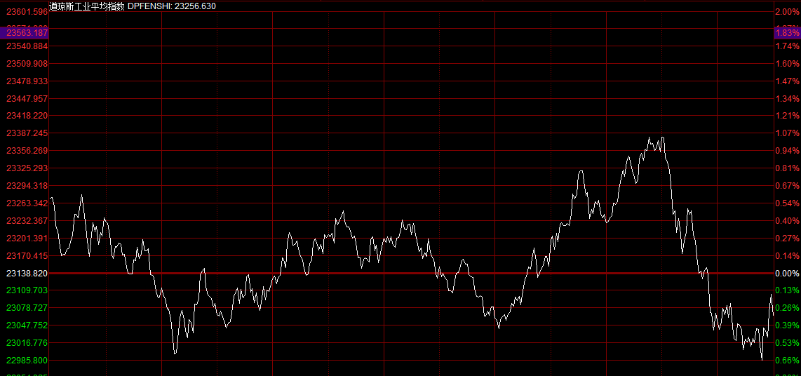 觀(guān)望中美貿(mào)易談判進(jìn)展,美股周一反覆向好,三大指數(shù)收盤(pán)上漲。道指收?qǐng)?bào)23531點(diǎn),升98點(diǎn)或0.42%;標(biāo)指收?qǐng)?bào)2549點(diǎn),升17點(diǎn)或0.7%;納指收?qǐng)?bào)6823點(diǎn),升84點(diǎn)或1.26%。