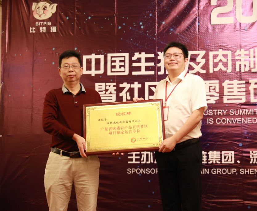 龍鏈集團董事局主席、川豬集團董事長、深圳龍鏈新零售有限公司董事長夏可,上臺接受了這項全廣東省獨家的授權(quán)牌,并發(fā)表感言:這既是廣東省委、省政府對深圳龍鏈新零售有限公司以區(qū)塊鏈、人工智能、物聯(lián)網(wǎng)等領(lǐng)域的高新科技,打造形成了生豬及肉制品等高品質(zhì)“菜籃子工程”系列產(chǎn)品的規(guī)?;I(yè)化產(chǎn)供銷及商業(yè)平臺服務(wù)“一條龍”的肯定,也是一種鞭策——鞭策龍鏈人將自創(chuàng)的“比特豬”品牌穩(wěn)固為中國高端健康食品結(jié)合社區(qū)新零售領(lǐng)域的第一品牌,并不斷推動市民能夠以更便捷的方式與更良好的消費體驗,獲得高品質(zhì)的放心食品。
