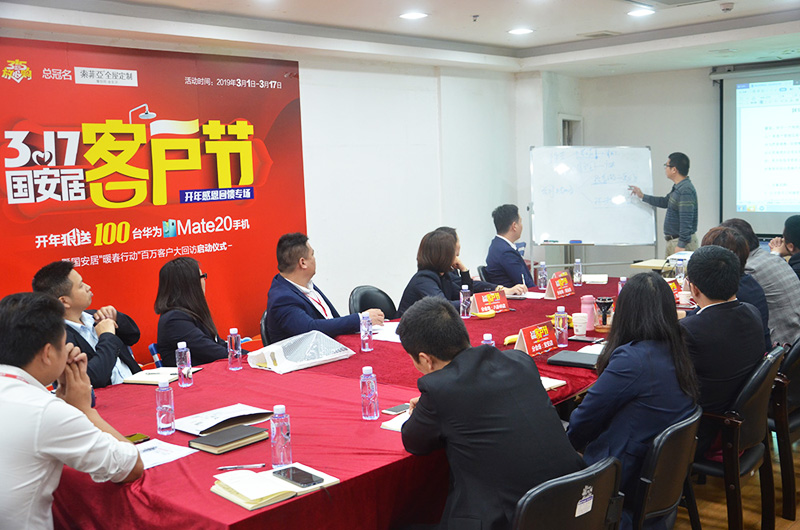 會(huì)議伊始,國(guó)安居副總經(jīng)理鄧劍峰對(duì)本次活動(dòng)具體優(yōu)惠內(nèi)容、活動(dòng)形式、宣傳方式以及力度等為大家進(jìn)行了詳細(xì)的部署,此次活動(dòng)不僅是行業(yè)新年首次活動(dòng),也是國(guó)安居2019年進(jìn)行新營(yíng)銷手段的一次新嘗試,新突破,更是奠定影響年度營(yíng)銷基調(diào)的關(guān)鍵,所以必須先行一步,贏在起點(diǎn),相信在2019年,銷售將會(huì)提升到一個(gè)新的高度,讓我們凝心聚力加油干!