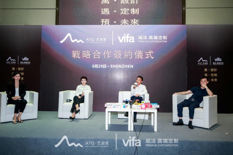 6月29日下午,ATG·藝澍家 & vifa威法戰(zhàn)略合作簽約儀式在紅星美凱龍深圳香蜜湖商場(chǎng)舉行,vifa威法董事長(zhǎng)楊煉、總經(jīng)理王超及威法高端定制核心區(qū)域代理商們悉數(shù)到場(chǎng),與ATG·藝澍家CEO張富麗、來(lái)自ATG亞太國(guó)際的設(shè)計(jì)師團(tuán)隊(duì)等就跨界合作議題展開(kāi)深入的交流溝通?,F(xiàn)場(chǎng)火花碰撞,在高端家裝市場(chǎng)領(lǐng)域深耕多年的雙方領(lǐng)導(dǎo)分享了對(duì)“高奢住宅定制”的理解,坦言行業(yè)痛點(diǎn),剖析行業(yè)趨勢(shì),并就當(dāng)前高奢定制市場(chǎng)發(fā)展的現(xiàn)狀以及問(wèn)題展開(kāi)全面探討。