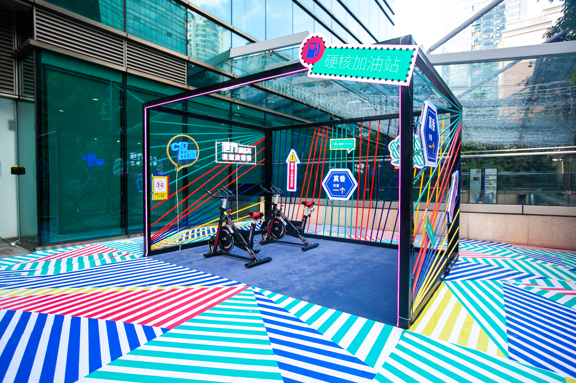 通過線下空間打造可供青年人拍照打卡的主題場景,讓“硬核”青年可以找到自身標簽,從而自發(fā)二次傳播。在“硬核”的概念中,PR活動延伸出夏日音樂祭、無人機紅包雨、硬核格斗機器人、流行嘻哈說唱、電音泳池趴等深受年輕人喜好體驗項目。