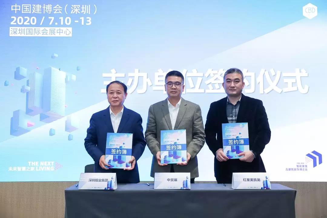 致辭結束后,中國建博會(深圳)三家主辦單位中貿展、紅星美凱龍、深圳報業(yè)集團現(xiàn)場進行簽約儀式。