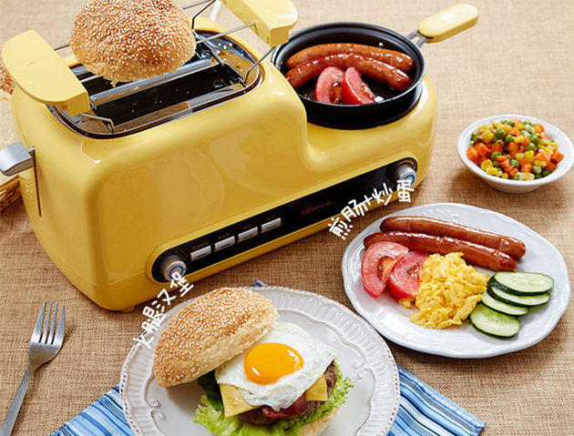 在時間匆忙的早上,要想同時完成烤面包、煎培根、煎雞蛋等操作,卻還要用到多種電器才能完成,又費時又顯忙亂。這時,一臺具備了烘、煎、烤、蒸、烙五種功能的小熊多士爐DSL-A02Z1就可輕松解決早餐問題。一邊烤土司,一邊用煎盤煎雞蛋和培根,整個過程只需5分鐘,便可完成一份美味三明治。吐司焦香,培根與雞蛋熱氣騰騰,搭配一兩片脆生菜,一口下去,便是滿滿的“小幸?!薄?/p>