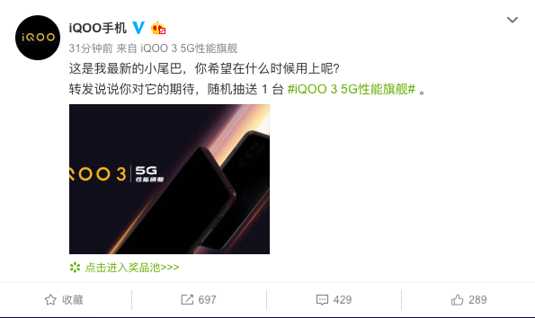 雖然iQOO3的具體配置尚不清楚,但“5G性能旗艦”卻給了我們很大的聯(lián)想空間。聯(lián)想到2019年底高通8系最新旗艦級(jí)處理器驍龍865正式發(fā)布時(shí), iQOO官方微博第一時(shí)間與“Qualcomm中國(guó)”進(jìn)行互動(dòng),瘋狂暗示 iQOO將有望首批搭載高通驍龍865處理器。而“5G性能旗艦”定義的再次放出,正好符合高通驍龍865的性能特征,讓酷客們對(duì)iQOO3的性能充滿期待。