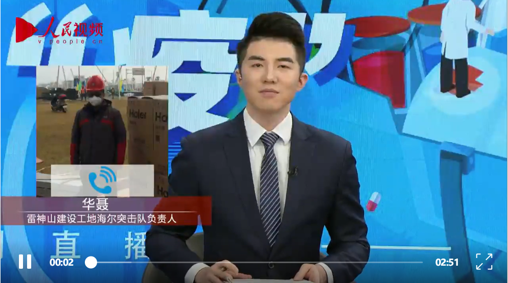 在連線中,海爾突擊隊現場負責人華聶說,疫情發(fā)生以后,聽到雷神山醫(yī)院要成立海爾突擊隊,很多人都自愿放棄休假,紛紛報名,他們有來自各地的春節(jié)期間值班人員,也有家住本地的服務人員。大家第一時間來到雷神山醫(yī)院建設現場,支援醫(yī)院建設。
