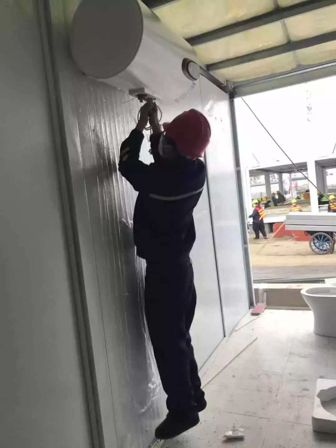 據了解,雷神山醫(yī)院工地上正在24小時不間斷地施工,現場每時每刻都在變化。目前,雷神山醫(yī)院的部分房間正在進行內部裝修,海爾突擊隊的隊員在現場接受項目的統(tǒng)一指揮,2月4日,300臺熱水器設備按計劃全部安裝完成。