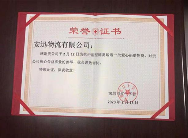 當(dāng)?shù)絻商幘柚攸c(diǎn)收集好物資后,國(guó)美物流車輛到達(dá)深圳市疾控中心已是下午兩點(diǎn)多,一路上兩人水米未進(jìn),盡力保證捐贈(zèng)物資的及時(shí)到位。深圳市紅十字會(huì)為國(guó)美安迅物流發(fā)來(lái)了榮譽(yù)證書(shū),對(duì)他們及時(shí)運(yùn)送愛(ài)心捐贈(zèng)物資的善舉表示感謝。