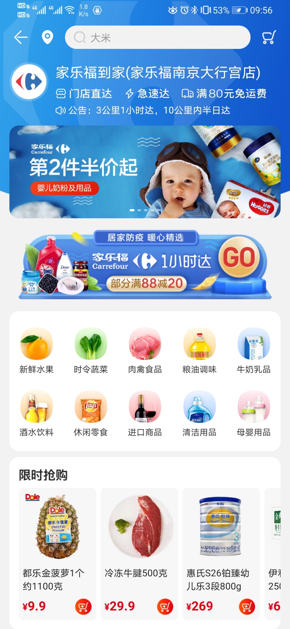 在去年剛剛完成了全場(chǎng)景布局的蘇寧此次則是多點(diǎn)作戰(zhàn),“一小時(shí)場(chǎng)景生活圈”近在身邊的優(yōu)勢(shì)充分發(fā)揮。除了蘇寧易購(gòu)主站,蘇寧小店深耕社區(qū),采取“線上下單,線下取貨“的蘇寧菜場(chǎng)模式,銷售規(guī)模同比增長(zhǎng)超過(guò)50%。線上蘇寧超市業(yè)務(wù)也呈現(xiàn)翻倍增長(zhǎng)。蘇寧到家業(yè)務(wù)規(guī)模同比增長(zhǎng)近4倍。家樂(lè)福春節(jié)期間銷售額增速同行業(yè)領(lǐng)先。