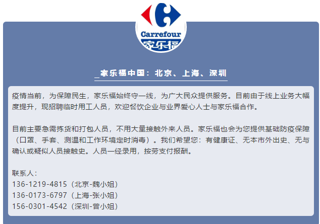 2月3日,盒馬鮮生發(fā)布與云海肴、青年餐廳并肩作戰(zhàn)的信息后,多家企業(yè)先后加入,與盒馬鮮生達(dá)成臨時(shí)用工合作。截止2月14日,超40家餐飲企業(yè)的2700余名“共享員工”,加入盒馬鮮生臨時(shí)用工隊(duì)伍。