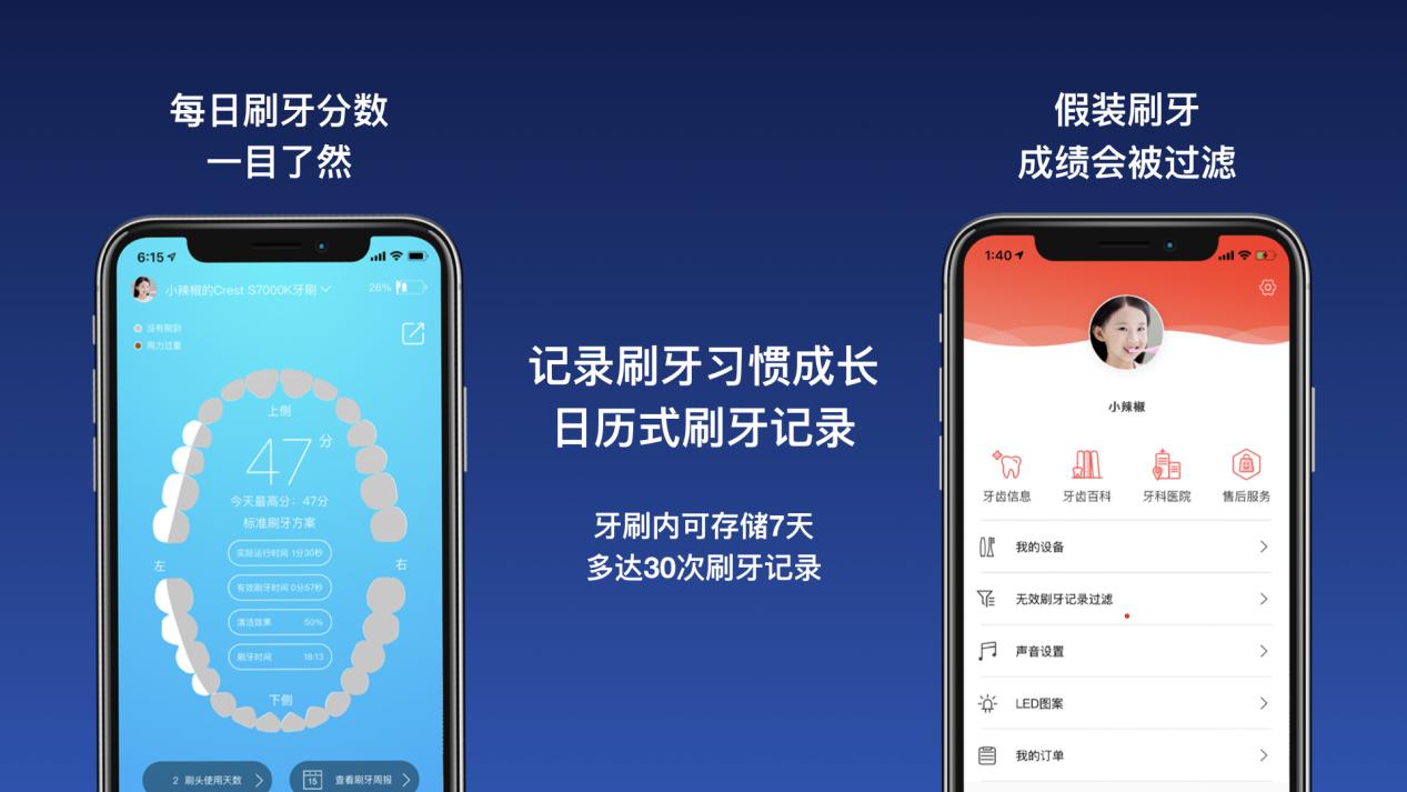 牙刷內(nèi)置的智能芯片可以計(jì)算有效刷牙效果;通過內(nèi)置九軸陀螺儀,每分鐘可檢測(cè)1500次刷牙姿態(tài);而內(nèi)置的壓力檢測(cè)能夠知道孩子的刷牙力度;軟硬件結(jié)合實(shí)現(xiàn)智能打分,讓孩子和家長直觀看到刷牙效果。