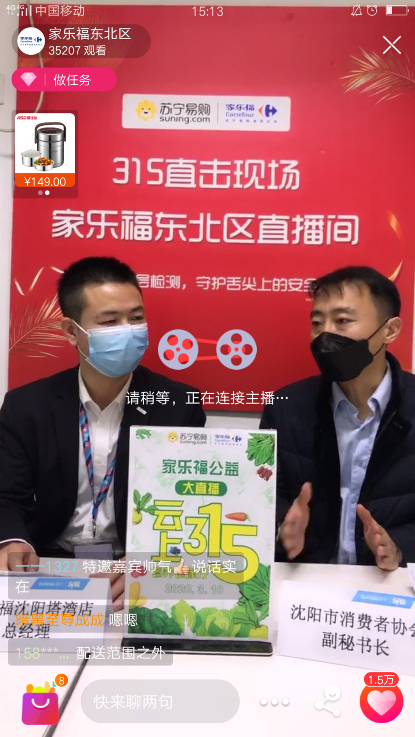 據(jù)悉,圍繞消費者“關(guān)注舌尖安全”這一需求,家樂福啟動“家樂福公益大直播”,通過“互聯(lián)網(wǎng)+直播”的全新形式,讓食品流通全過程透明可見,直觀呈現(xiàn)在消費者面前。3月10日,上午9點半至下午6點半,長沙賀龍店、北京四元橋店、沈陽塔灣店、珠海吉大店、上海古北店和成都大世界店六店接力云直播,推出“民以食為天,食以安為先”、“防疫保供網(wǎng)上行,健康營養(yǎng)很安心”、“層層檢測,守護舌尖上的安全”、“東北老鐵的檢測日?!薄ⅰ罢乙惨?,吃貨更要健康”及“川式面包,你確定不是辣的”等六大直播主題,助力消費者“云上3.15,營養(yǎng)健康行”。