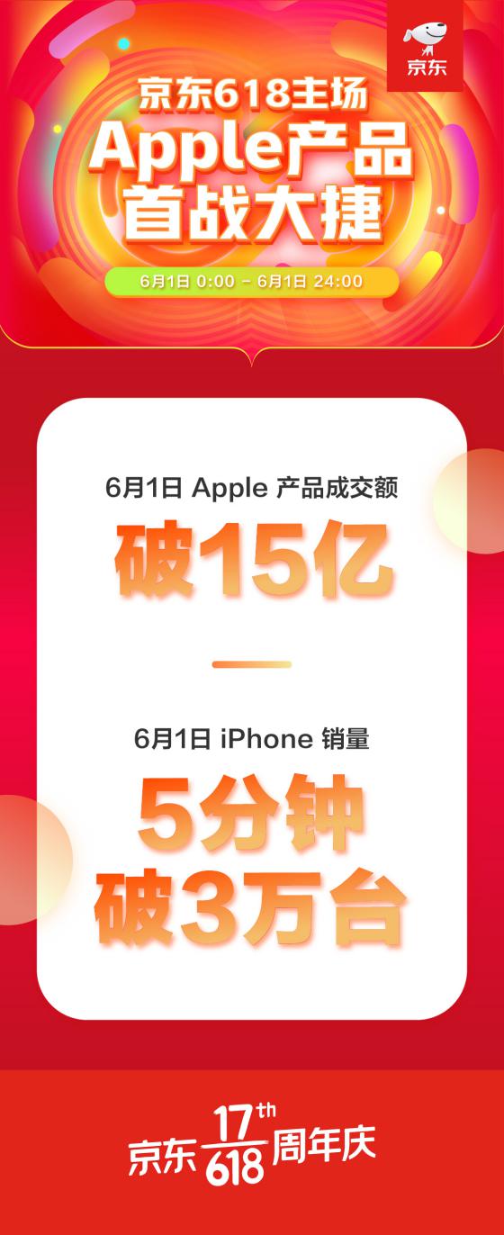 見(jiàn)圳客戶(hù)端·深圳新聞網(wǎng)2020年6月3日訊 京東618開(kāi)啟首日,Apple品牌接連創(chuàng)下銷(xiāo)售記錄:僅5秒銷(xiāo)售額就突破1億;5分鐘后,iPhone銷(xiāo)量突破3萬(wàn)臺(tái);全天成交金額達(dá)到15億。