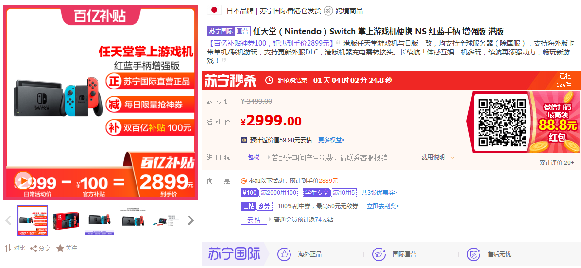 數(shù)據(jù)顯示,6月29日-7月5日,蘇寧國際口紅銷量增長(zhǎng)明顯,最受歡迎的口紅色號(hào)為mac小辣椒磚紅色。為了給高考生鼓勵(lì),家長(zhǎng)們也是操碎了心。數(shù)據(jù)顯示,6月29日-7月5日,蘇寧國際switch游戲機(jī)也銷售也創(chuàng)新高。目前,蘇寧國際該產(chǎn)品正參與百億補(bǔ)貼,優(yōu)惠力度與618期間差不多,不少家長(zhǎng)選擇購買這款產(chǎn)品作為孩子們苦讀的獎(jiǎng)勵(lì)。
