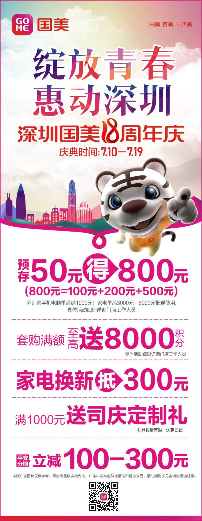 時(shí)間是最好的見(jiàn)證者,萬(wàn)分榮幸我們和辛勤的深圳建設(shè)者一起見(jiàn)證了這座偉大城市的發(fā)展與變遷,深圳無(wú)疑是充滿創(chuàng)造力和奇跡的城市,時(shí)間就是金錢(qián),效率就是生命是這座城市的座右銘。為感謝粉絲們一直以來(lái)對(duì)國(guó)美的支持與厚愛(ài),值此18周年大慶之際,深圳國(guó)美于7月10日-19日舉辦了一場(chǎng)“綻放青春,惠動(dòng)鵬城”18周年慶活動(dòng)!