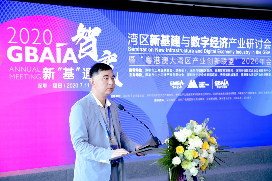 2020年7月11日,在深圳市工商聯合會(總商會)、深圳市福田區(qū)政府、香港貿易發(fā)展局的指導下,由深圳市中小企業(yè)產業(yè)創(chuàng)新協(xié)會、深圳市中小企業(yè)家聯誼會、天安數碼城集團、粵港澳大灣區(qū)產業(yè)創(chuàng)新聯盟聯合主辦的“灣區(qū)新基建與數字經濟產業(yè)研討會”在深圳國際創(chuàng)新中心成功舉行。