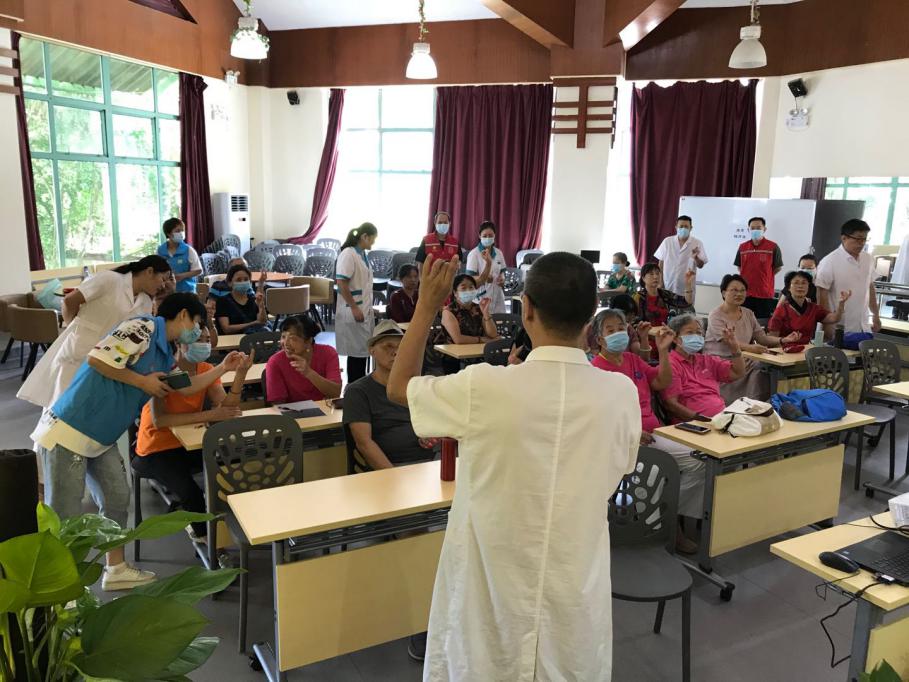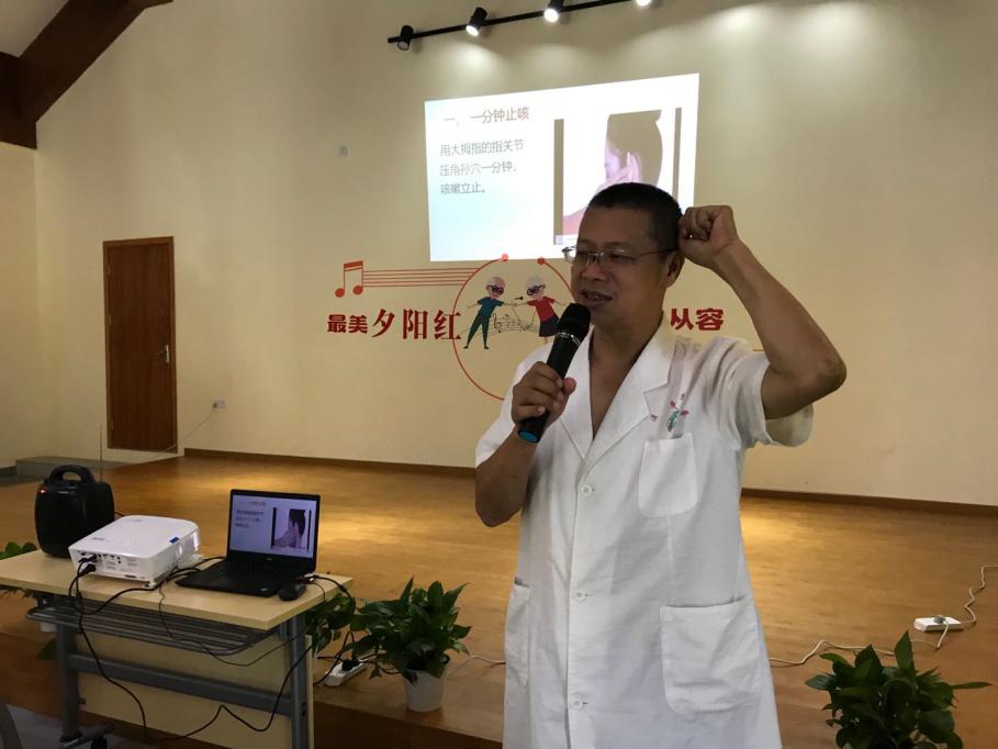 活動過程中,全場互動和諧有序:老年朋友們仔細(xì)聽講,積極提問,中醫(yī)專家耐心解答,現(xiàn)場手把手教老年人指位法,一分鐘解決疼痛、咳嗽、止喘等技法,現(xiàn)場學(xué)習(xí)、現(xiàn)場體驗(yàn),現(xiàn)場有效,激發(fā)了老年人的興趣,受到了老年人的歡迎。
