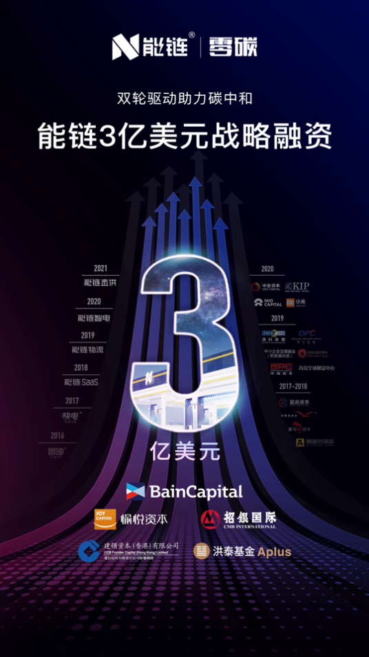 中國網(wǎng)2020年3月23日訊 昨日,能鏈宣布完成新一輪2億美元戰(zhàn)略融資,貝恩資本(Bain Capital)領(lǐng)投,老股東愉悅資本繼續(xù)跟投,華興資本擔(dān)任獨家財務(wù)顧問。綜合今年年初招銀國際領(lǐng)投的1億美元融資,能鏈本次戰(zhàn)略輪系列融資累計金額達3億美元。能鏈股東還包括中金資本、洪泰基金旗下國調(diào)洪泰、中小企業(yè)發(fā)展基金、小米集團、蔚來資本、KIP中國等。