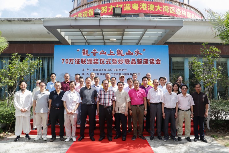 見圳客戶端·深圳新聞網(wǎng)2021年5月18日訊(記者 常軍平)“觀音山上觀山水”70萬征聯(lián)活動終有結果,評選出15句優(yōu)秀下聯(lián),最佳下聯(lián)空缺,并于5月17日在東莞觀音山舉行了頒獎儀式及妙聯(lián)品鑒座談會?;顒蝇F(xiàn)場,楹聯(lián)家們雅聚一堂,共同見證了本次征聯(lián)活動優(yōu)秀獎的頒出。以楹聯(lián)為媒,進行交流互動。活動期間,組委會代表東莞觀音山將結余款項67萬元悉數(shù)捐給東莞樟木頭鎮(zhèn)慈善會。鑒于觀音山在推動楹聯(lián)文化的傳承發(fā)展做出的突出貢獻,被中國楹聯(lián)學會授予“中國楹聯(lián)文化名山”稱號。