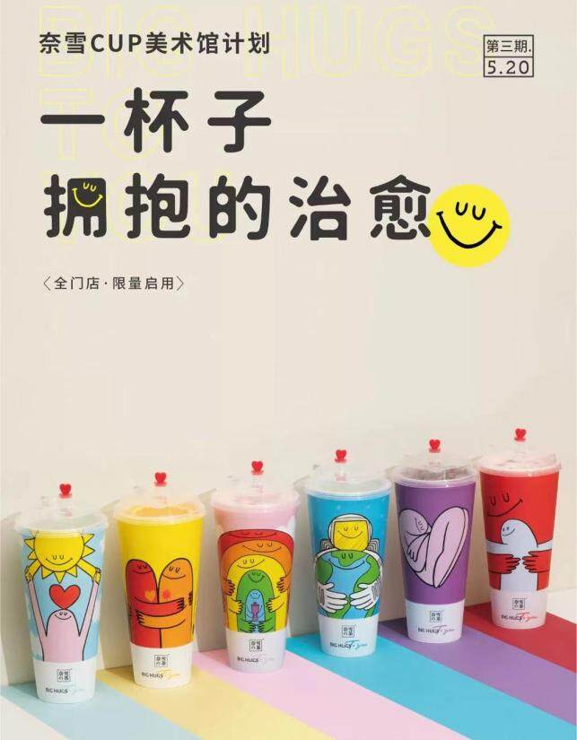 沒(méi)有財(cái)大氣粗的“品牌集郵”,也沒(méi)有投機(jī)取巧的抖機(jī)靈,奈雪似乎一直都深諳情感營(yíng)銷(xiāo)的法門(mén),過(guò)往也不乏優(yōu)質(zhì)案例。筆者印象最深的是“CUP美術(shù)館計(jì)劃”中的“瑞獸杯”和“抱抱杯”。前者是在2020與2021新舊年相交之際推出的,以茶飲杯為載體推出六款意頭極好的瑞獸,寓意“瑞獸相伴時(shí)來(lái)運(yùn)轉(zhuǎn)”,與消費(fèi)者新年新氣象的希冀不謀而合。