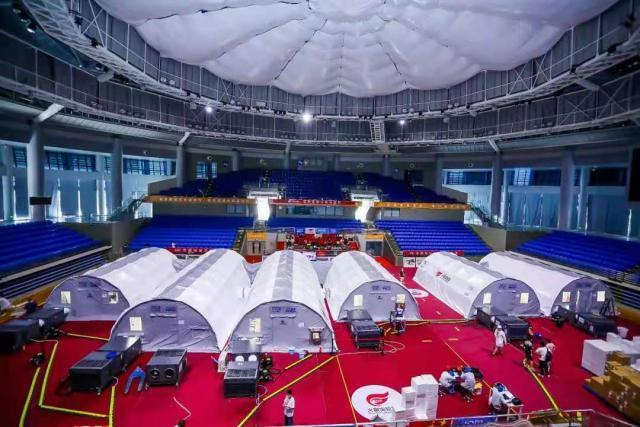 從5月27號(hào)凌晨5時(shí)物料進(jìn)入場(chǎng)館開(kāi)始,華大團(tuán)隊(duì)在深圳市衛(wèi)健委、鹽田區(qū)衛(wèi)健局、深圳鹽田區(qū)供電局、鹽田體育中心等各部門(mén)單位的大力支持和協(xié)調(diào)下,6小時(shí)內(nèi)快速搭建起2套、6個(gè)艙體的快裝式負(fù)壓硬氣膜核酸檢測(cè)實(shí)驗(yàn)室(以下簡(jiǎn)稱(chēng)"硬氣膜實(shí)驗(yàn)室"),隨即,鹽田區(qū)搭載了華大智造自動(dòng)化設(shè)備的"火眼實(shí)驗(yàn)室"投入試運(yùn)行,并在9小時(shí)內(nèi)通過(guò)專(zhuān)家組評(píng)審。